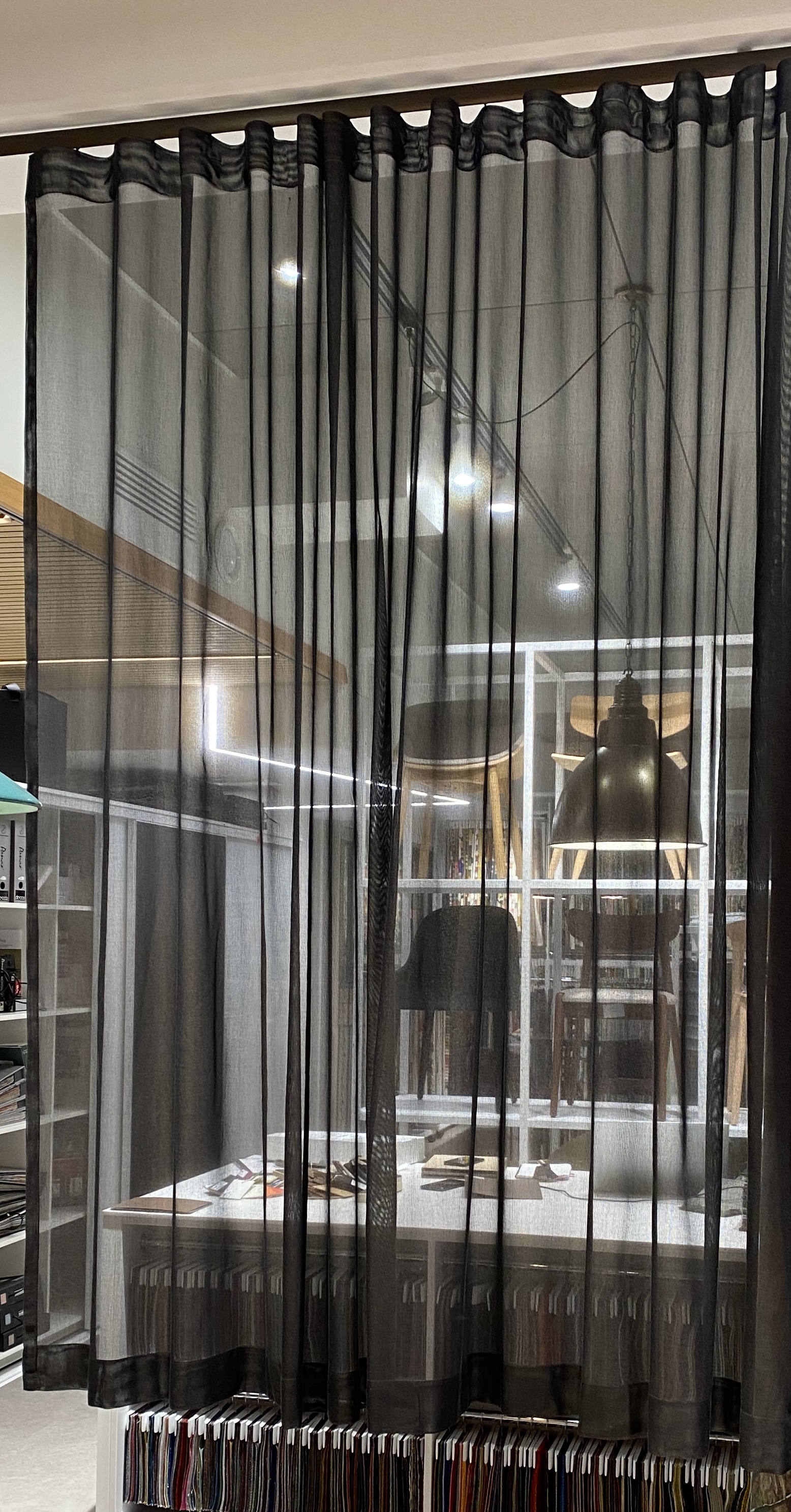Mustat, tuplaleveät valoverhot FR-Onen Web-verhokankaasta, värisävy 05 Liquorice. Web-kankaan materiaali on paloturvallista polyesteria. Tätä kangasta on varastossa n. 20–25 metriä, joten verhoja voi teettää lisää. Verhoihin on ommeltu wave-verhonauha, jonka avulla verhot voi poimuttaa tyylikkäille, loiville laskoksille. ERÄ: 3 kpl. Lisäpalvelut: Verhojen muokkaus (lyhennys, kavennus, yhdistäminen) 55 e/kpl (alv 0 %). Hinta sisältää ompelun, silityksen ja pakkauksen. Saat kauttamme myös verhokiskot, verhokoukut ja liu’ut. Kysy lisätietoja: orders@decco.fi