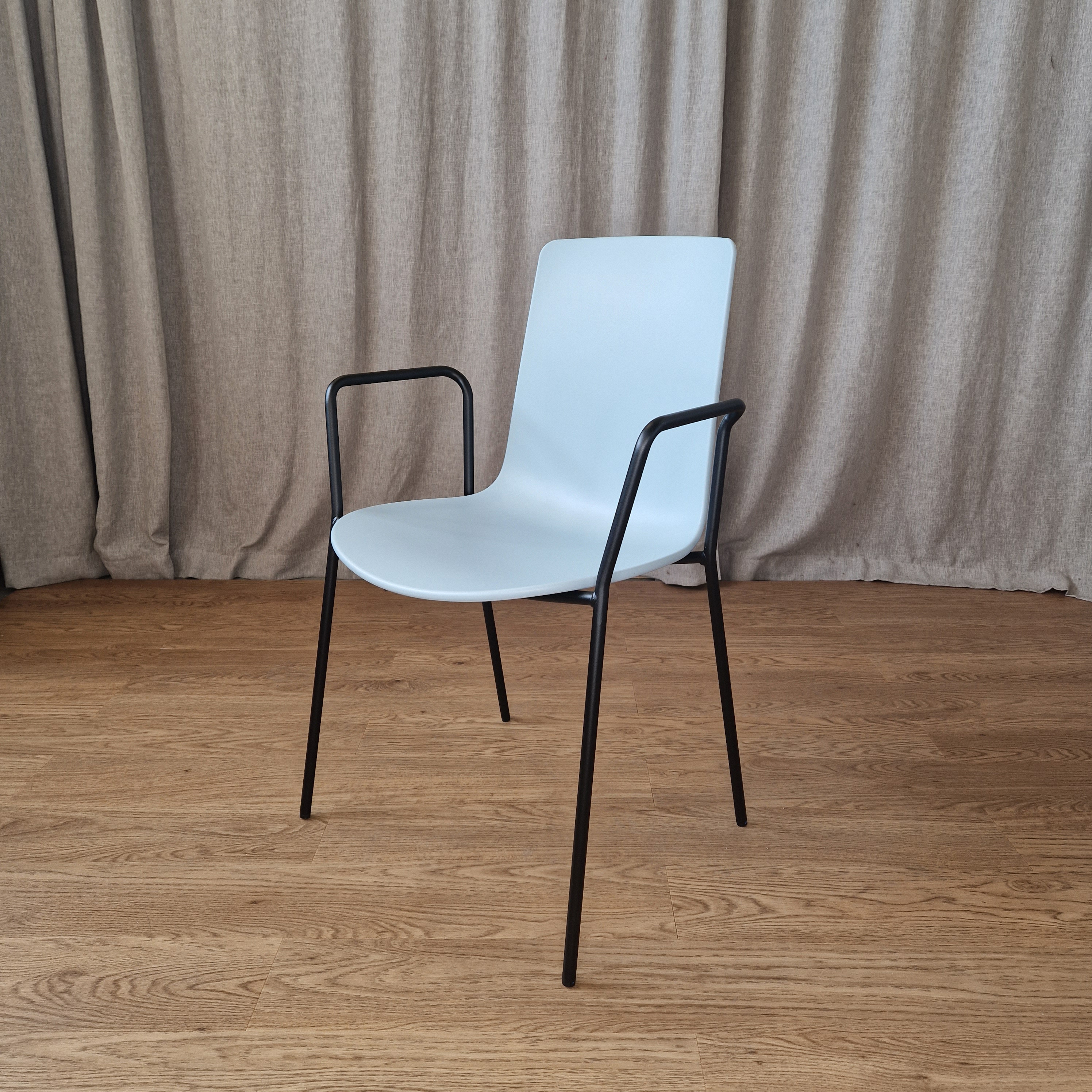 Projektista palautuneet, erinomaisessa kunnossa olevat Enean Lottus 4L -tuolit mustalla teräsrungolla. Istuin polypropeenia, väri: Sky (Pantone 5435). Laadukkaat tuolit, jotka sopivat erityisesti odotustiloihin, toimistoon ja oppimisympäristöihin. Pinottavat. ERÄ: 9 kpl.